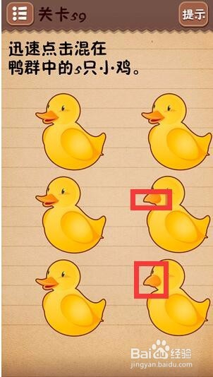第五十六关答案是6;第五十七关把所有东西包括题目都拖到冰箱中;第五十八关把题目中的“三明治”三个字拖到下方的盘子中;第五十九关连续点击五次尖嘴小黄鸡;第六十关把图中画的烟擦掉;