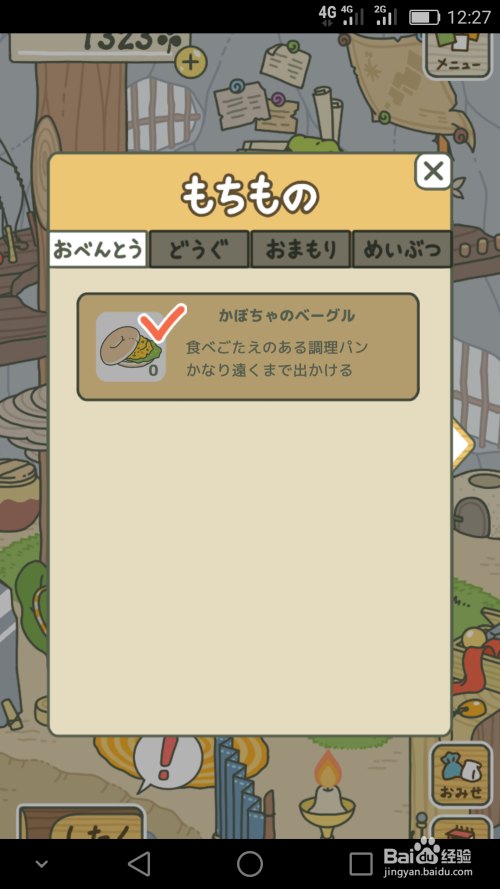 ④.用手指单击第一个“食物栏”,在弹出的【已购买物品】界面,点击选择之前已经购买过的面包。