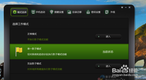 在使用影子系统的时候我们可以给系统加上一个密码防止我们的影子模式在公共电脑上被他人恶意使用,我们先打开影子系统的主界面。