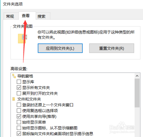 点击文件夹的选项菜单,依次点击查看,我们在查看的属性下进行详细的设置。
