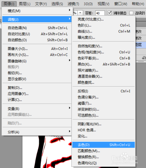 若是你想做当作纯口角的版画气概,可以先归并图层,然后选择菜单“图像”-“调整”-“去色”。
