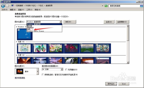 在桌面点窜页面我们点击图片位置框后面的箭头睁开图片位置选择“纯色”。