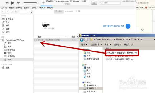 接下来打开改好扩展名的铃声目次,把需要的铃声直接拖设备下的铃声目次。