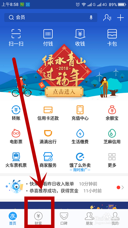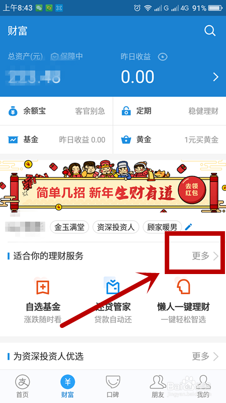 在首页点击财富页