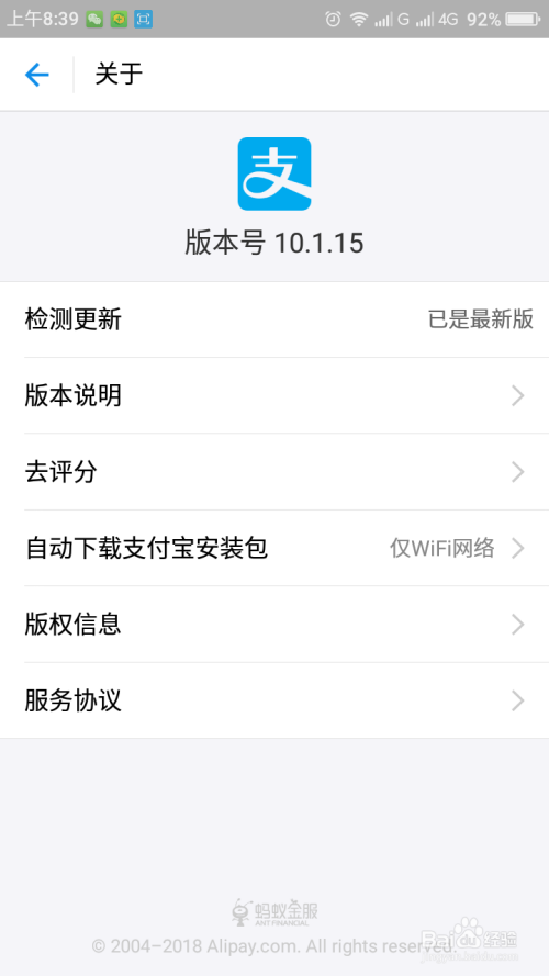 打开付出宝,将您的付出宝进级到最新版