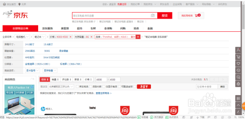在搜刮了“笔记本电脑”后,页面会跳转至商品展示页面。这时我们先不要看枚举的商品展示,我们先看搜刮栏位的前提过滤