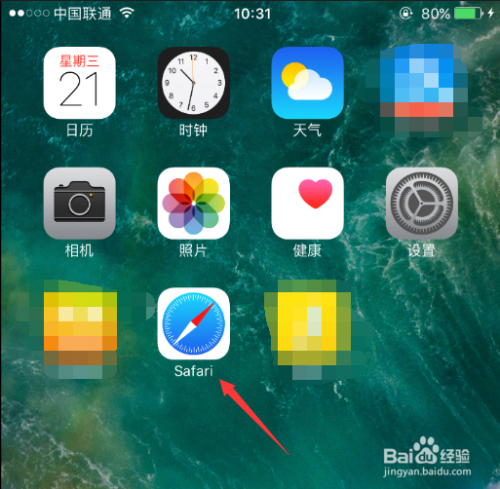 如图所示,解锁手机后,点击进入苹果自带浏览器(Safari)