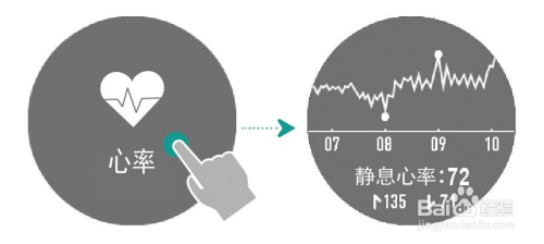 体例一:上下滑脱手表屏幕诚意率界面,点击屏幕,查看曩昔四个小时的心率转变曲线。