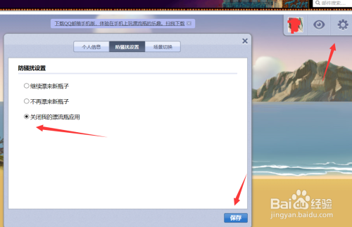 在防骚扰的设置下我们需要在封闭我的漂流瓶运用下点击勾选。