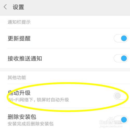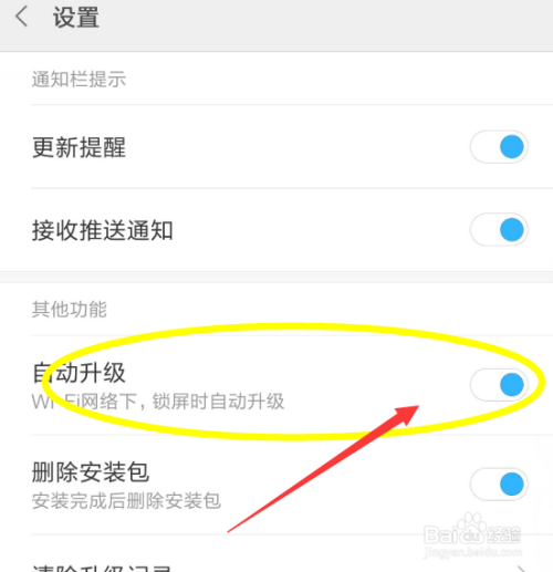 在设置按钮的具体设置下可以看到有一个主动更新手机应用的按钮,这里默认是开启的。