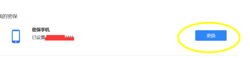 在当前绑定的手机号码后面会呈现一个改换的按钮。