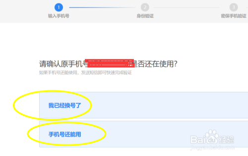 点击改换的按钮之后会跳转到改换的首页,在这个首页我们需要按照提醒来选择我们的当前绑定的手机号码是否正常利用。