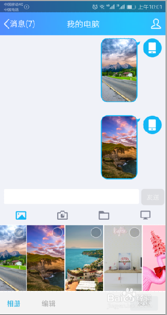 接着,我们点击发送。很快的,我们手机上的图片或者是视频就上传完了。