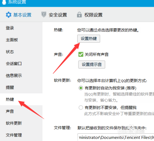 点击设置之后我们需要找到左边栏目标热键--设置按键。