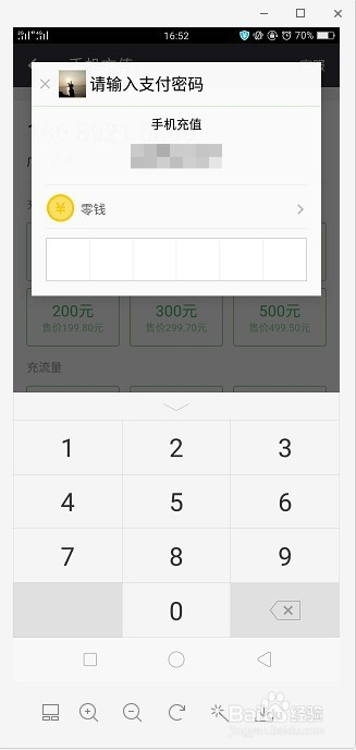 然后再输入你手机微信的付出密码,如许你的话费就充进去啦