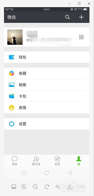 点击微信本家儿页面的“我”,然后点击下面的钱包