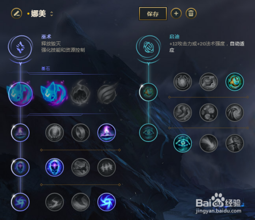 联盟里有几个不错的万金油辅助,而娜美(不是阿谁海贼娜美...)就是一个,符文保举,巫术:1-3-1-3,启迪:3-0-1;