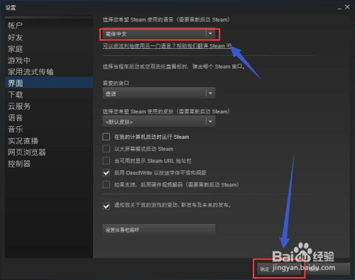 在界面设置栏位选择你喜好的显示说话,我们选择中文简体,如下图所示