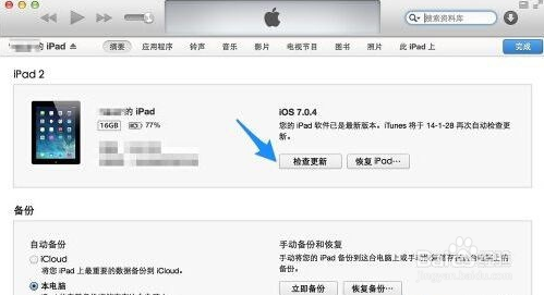 iTunes 会提醒要将 iPad 更新到新系统,点击“更新”按钮即可完当作系统更新。