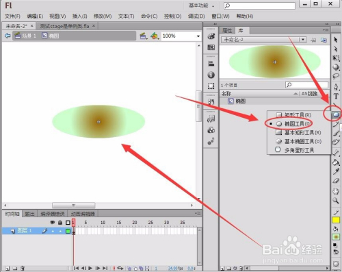 单击“插入”---->“新建元件”,新建一个“椭圆”影片剪辑元件。