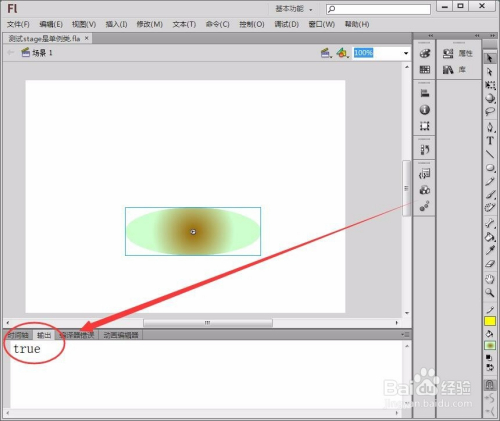 在动作面板中输入代码,测试时候轴引用的stage类,与椭圆影片剪辑元件引用的stage类,是否统一个。