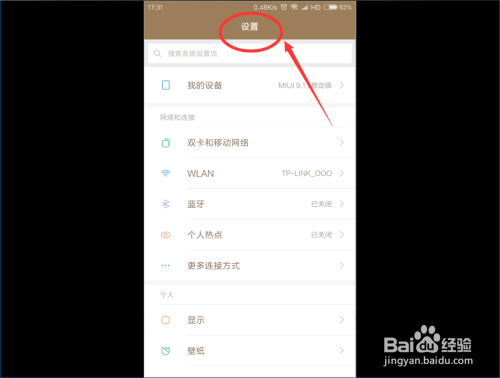 接着,我们在手机桌面,点击“设置 ”按钮,打开手机设置首页 。