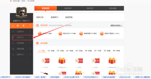 接着点击左侧的【活动中间】