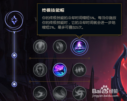 蝎子的副系符文带巫术系,然后点出终级技术帽和迅捷程序。最终技术帽可以削减年夜招CD,对于gank很是依靠年夜招的蝎子而言感化仍是很年夜的。