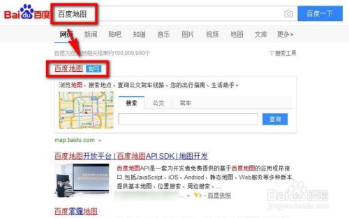 打开百度搜刮,在搜刮栏中输入“百度地图”,然后在搜刮成果中进入到百度地图的官网。