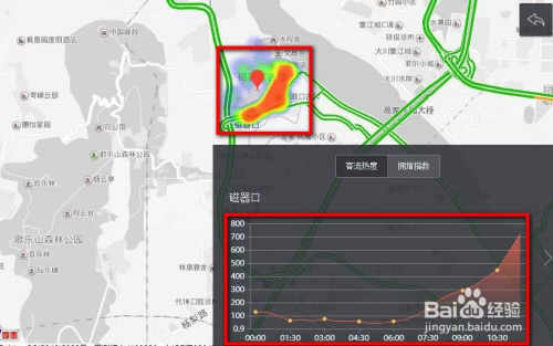 点击景点的名称之后,就能看到当前该景区的热力求了,而且在地图的右下方还会显示出该景点各个时候段的热度指数。若是热度指数过于高,则建议不要前去该旅游景点。