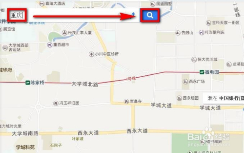 进入到百度地图后,在屏幕左上方的搜刮栏中输入你要旅游的目标地地点城市名称,然后点击搜索框后面的搜刮按钮。