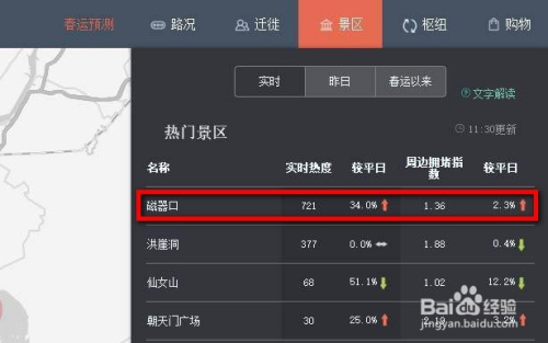 搜刮完当作后,在地图上的图示位置点击“春运出行年夜数据”。