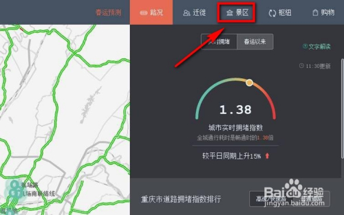 进入到春运出行年夜数据的页面后,在页面的右上方点击【景区】选项卡。