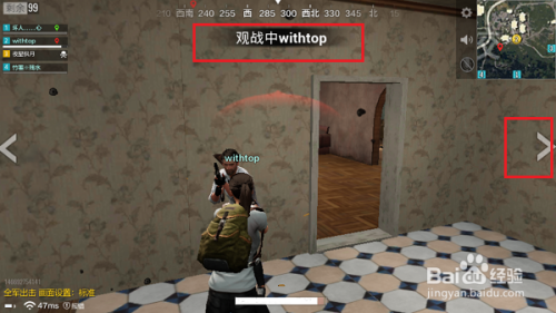 第二步进去吃鸡模式之后,可以拾取兵器,进犯其他玩家,标的目的平安区偏向进步,如下图所示: