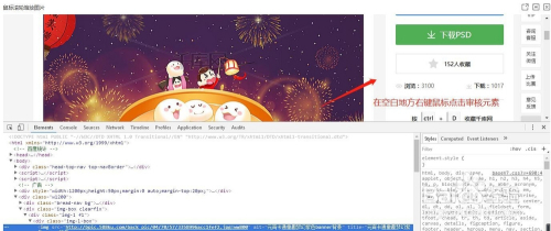 找个空白的处所点击鼠标右键选择审核元素
