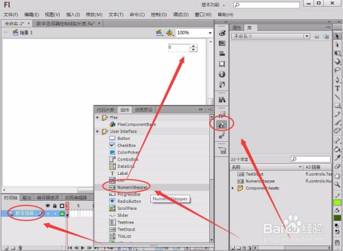 新建一个数字选择器图层,将NumericStepper元件拖动到舞台合适位置。