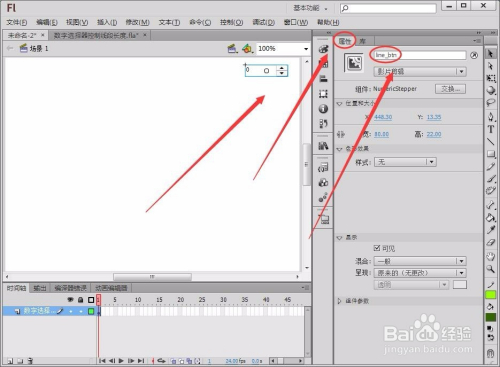 在舞台选中NumericStepper元件,在属性面板中将实例名称取名为“line_btn”。