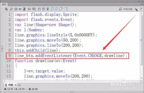 注册元件line_btn的CHANGE事务的侦听器,接收者函数为drawline。