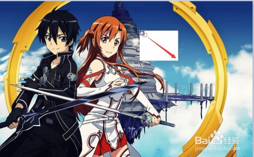 然后继续选择这个角拖动使之填充拖动时留下的白框。