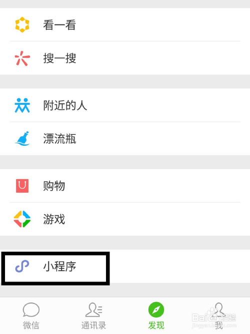 首先打开微信,点击发现