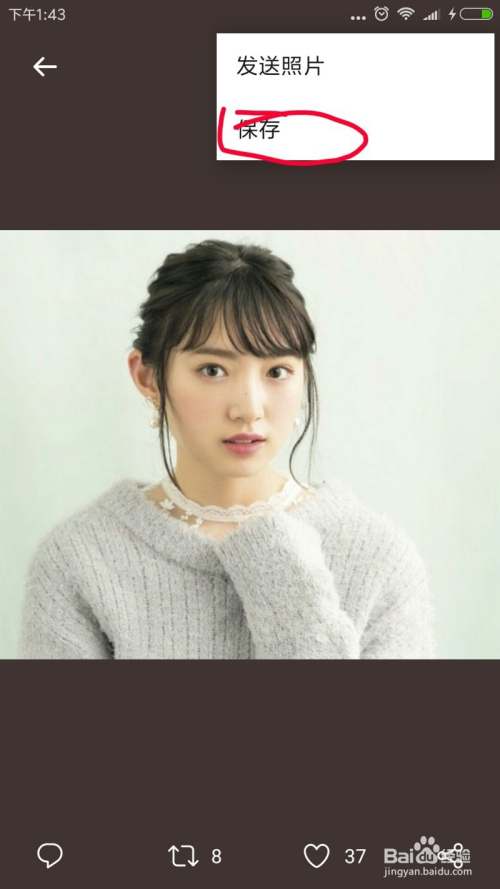 此时, 点击App的右上角,弹出菜单中点击保留,就可以实现图片保留到你的手机上。