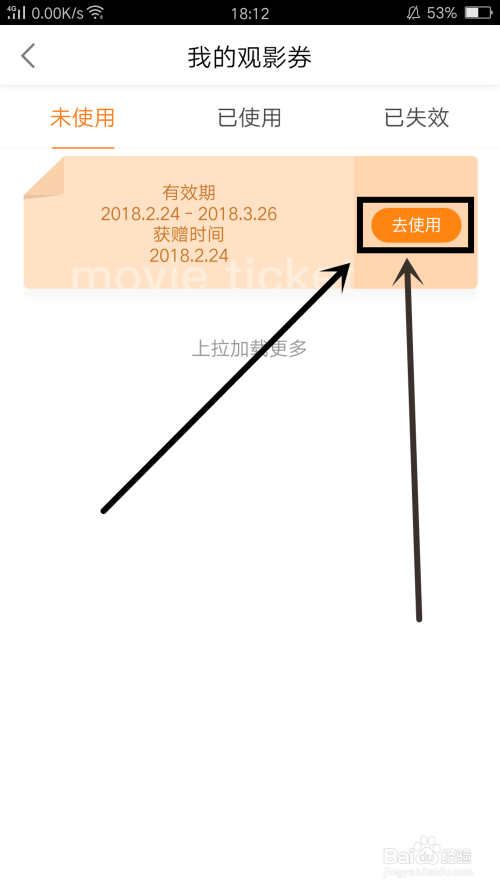 在我的不雅影券中,可以查看拥有的不雅影券数目--即未利用的,如图所示,点击“去利用”。