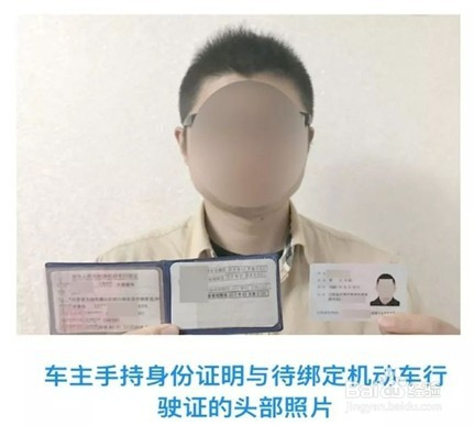 车本家儿本人手持身份证、待绑定车辆行驶证摄影示例