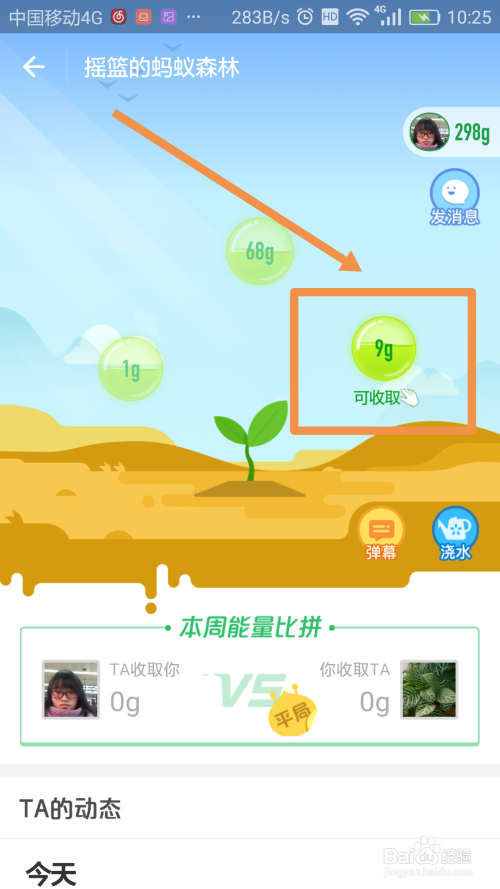 发生绿色能量后,在树苗的上面会呈现一些能量球,且会显示能量的几多,点击绿色能量球就获取到了绿色能量啦,如图所示:
