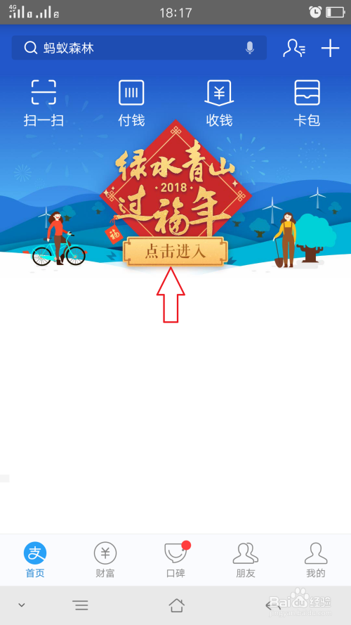 这个要先与老友商定好,你要什么福,他要什么福,且两边都有的环境下才能换,要不就只能送,打开付出宝,进入到首页,如图