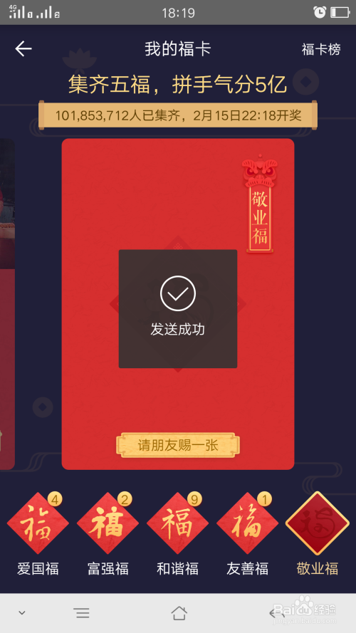 点击发送,就能把信息,发送给伴侣,伴侣点开信息送一下就可以了,同理伴侣也这么弄一下,就能告竣换福的结果了