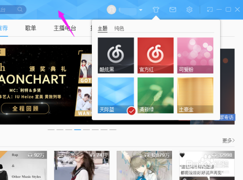 在电脑上,利用这条目法式听音乐,想要给首页换个皮肤该怎么做呢?接下来,小编就和大师分享怎么换皮肤。