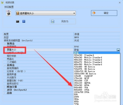 在输出设置装备摆设的窗口中,找到屏幕大小一项,在对应的右侧,打开下拉菜单,这里有良多尺寸参数可以选择,选哪个呢?告诉你吧,尺寸越小的,转换后视频体积也就会越小,可是考虑到画质不克不及太差,所以选一个合适的尺寸就可以了,例如480P,意思是让视频宽度缩小到480像素。
