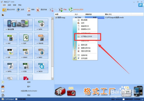 期待一会,我们的视频转换完当作了,接着右击列表中的视频,选择打开输出文件,如图。
