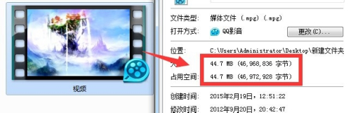 首先右击你的视频文件,然后选择属性,看一下你的视频体积有多年夜。我再这里用一个别积为44.7M的视频为例子。